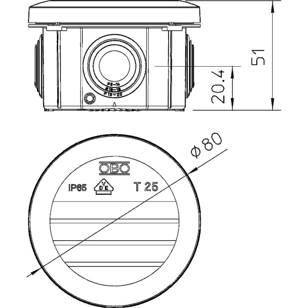 Розподільні коробки виготовлені з термопластичного поліпропіленового полімеру із вставними ущільненнями з етиленвінілацетату (EVA). Це дозволяє встановлювати кабелі безпосередньо через 4 x M25 ущільнення, або ущільнення можна розрізати ножем в попередньо зазначених точках, щоб створити вступний отвір для кабелів або труб. Крім того, кабельні вводи можуть бути вставлені через отвори замість ущільнень та зафіксовані контргайкою зсередини.