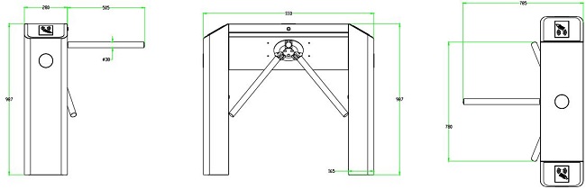 Габаритні розміри турнікету ZKTeco TS2000 Pro:
