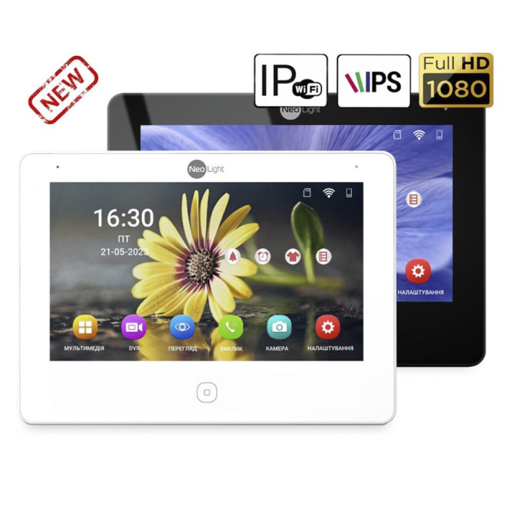 ALPHA IPW - відеодомофон, виготовлений брендом NeoLight. Зручний у налаштуванні, має мінімалістичний, стильний дизайн, може записувати звук та відео реагуючи на рух чотирма каналами.